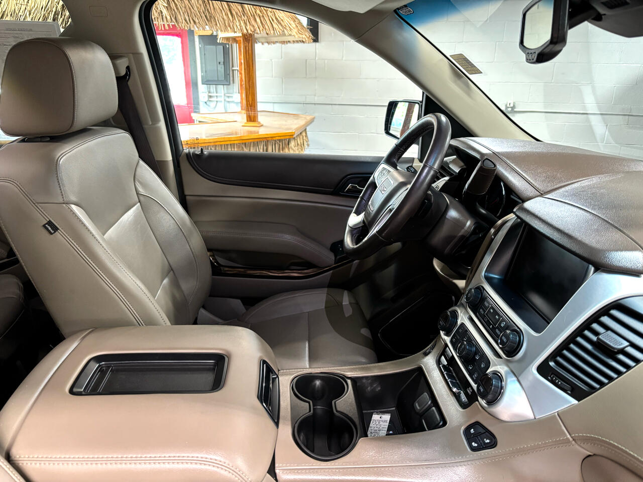 - Console, floor with storage area, cup holders